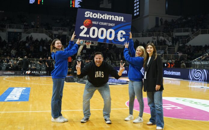 Ο φίλαθλος του ΠΑΟΚ ευστόχησε σε σουτ από το κέντρο του γηπέδου, το πανηγύρισε με ξεχωριστό τρόπο, κερδίζοντας το χειροκρότημα των φιλάθλων και φυσικά 2.000€, στο μεγάλο διαγωνισμό Half-Court Shot by Stoiximan.