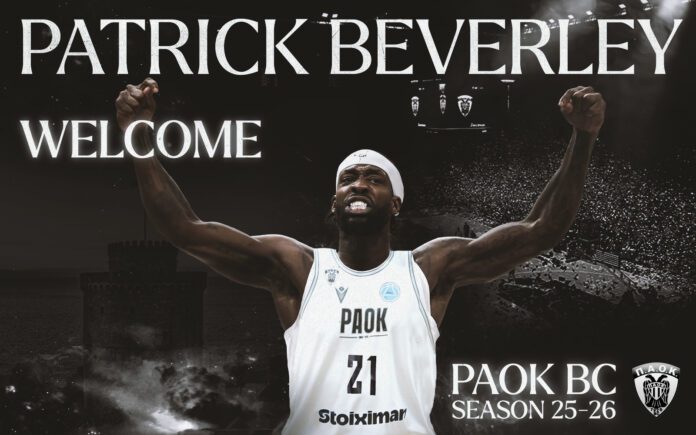 Η ΚΑΕ ΠΑΟΚ ανακοινώνει τη συμφωνία με τον Αμερικανό καλαθοσφαιριστή Patrick Beverley, ο οποίος θα ενισχύσει την προσπάθεια της ομάδας μας μέχρι το τέλος της αγωνιστικής περιόδου 2025-26.
