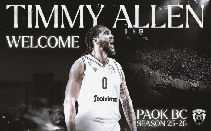 Ο Timmy Allen αγωνιζόταν μέχρι πρότινος στην Ιταλία με στην Trapani Shark, από την οποία και αποκτήθηκε με μεταγραφή. Ο 25χρονος Αμερικανός που ήταν από τους πλέον περιζήτητους παίκτες αυτή την εποχή στην Ευρώπη, έχει ήδη ενσωματωθεί με την ομάδα του ΠΑΟΚ και είναι ήδη στη διάθεσή του Coach Jure Zdovc.
