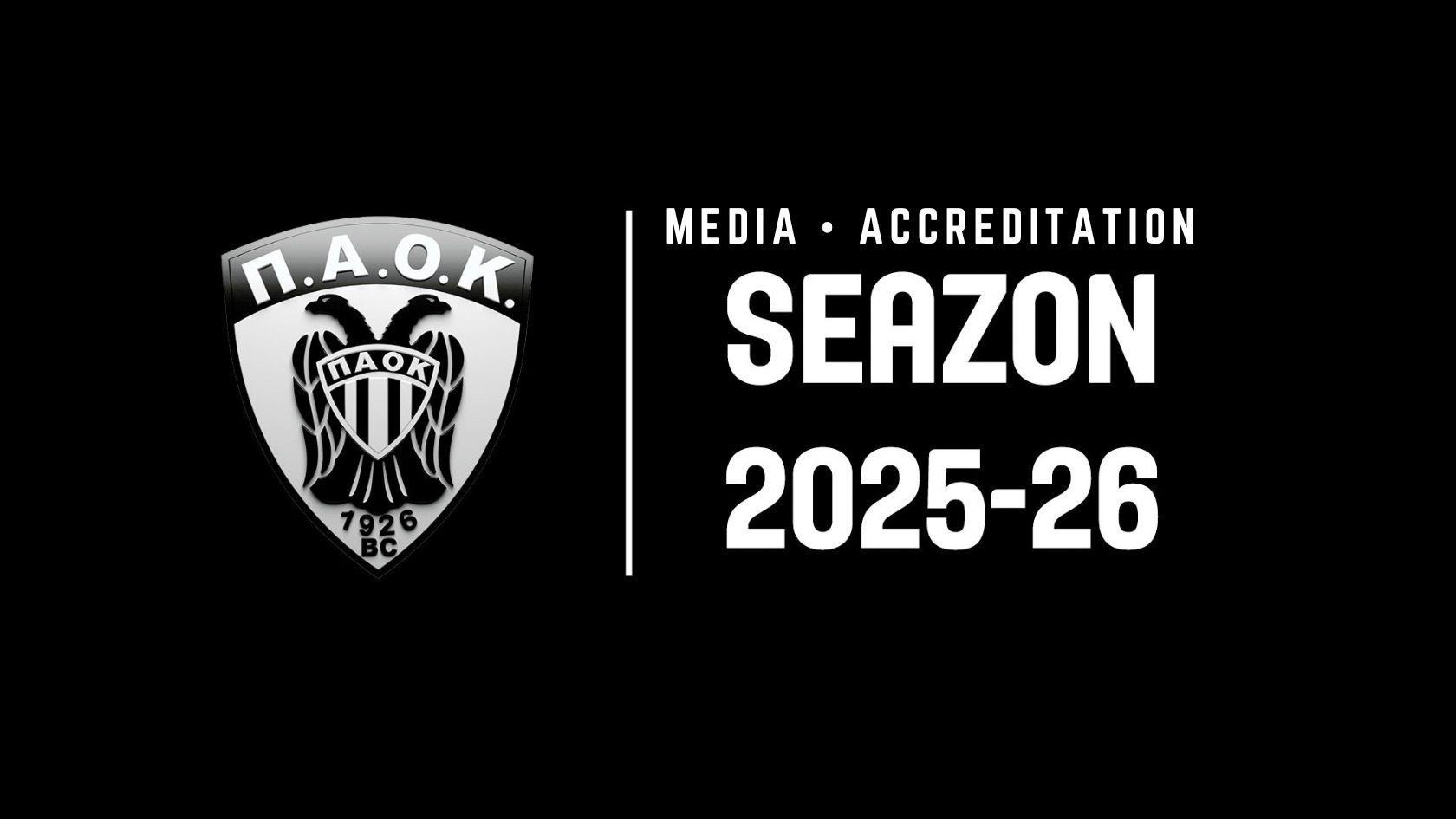 Οι εκπρόσωποι των ΜΜΕ (δημοσιογράφοι και φωτορεπόρτερ) που θέλουν να καλύψουν τους εντός έδρας αγώνες του ΠΑΟΚ mateco σε Ελλάδα και Ευρώπη για την αγωνιστική περίοδο 2025-26, θα πρέπει να αποστείλουν σχετικό αίτημα μέχρι και τη Δευτέρα 22 Σεπτεμβρίου 2025 στο [email protected]