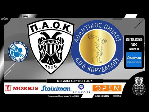 ⚽️ Για την 5η αγωνιστική της FUTSAL SUPER LEAGUE 2025-26 , ο ΠΑΟΚ υποδέχεται την Κυριακή 26 Οκτωβρίου 2025 και ώρα 1800, στο ΚΓ ΜΙΚΡΑ 3, την ομάδα ΑΟΑΟΔ Κορυδαλλού.