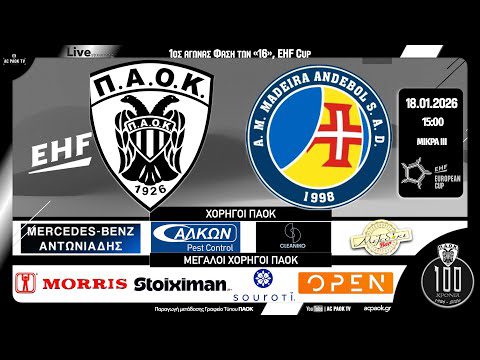 ⚽️ Για τον α’ αγώνα Last 16 – EHF EC – W 2025-26, ο ΠΑΟΚ υποδέχεται την Κυριακή 18 Ιαν 2026 και ώρα 1500, στο Σπίτι του Χάντμπολ στην Μίκρα, την ομάδα Madeira Andebol SAD