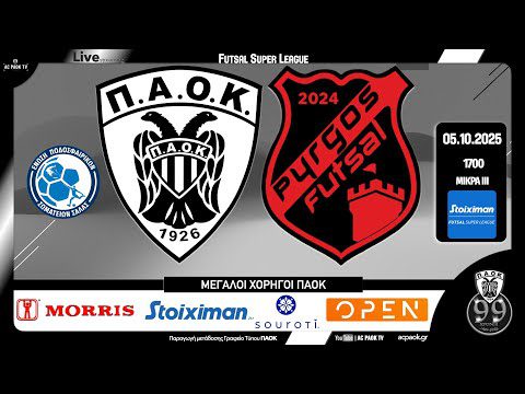 ⚽️ Για την 2η αγωνιστική της FUTSAL SUPER LEAGUE 2025-26 , ο ΠΑΟΚ υποδέχεται την Κυριακή 05 Οκτωβρίου 2025 και ώρα 1700, στο ΚΓ ΜΙΚΡΑ 3, την ομάδα ΠΥΡΓΟΣ 2024.