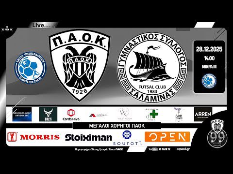 ⚽️ Για την 14η αγωνιστική της FUTSAL SUPER LEAGUE 2025-26 , ο ΠΑΟΚ υποδέχεται την Κυριακή 28 Δεκ 2025 και ώρα 1400, στο ΚΓ ΜΙΚΡΑ 3, την ομάδα ΣΑΛΑΜΙΝΑ ΓΣ