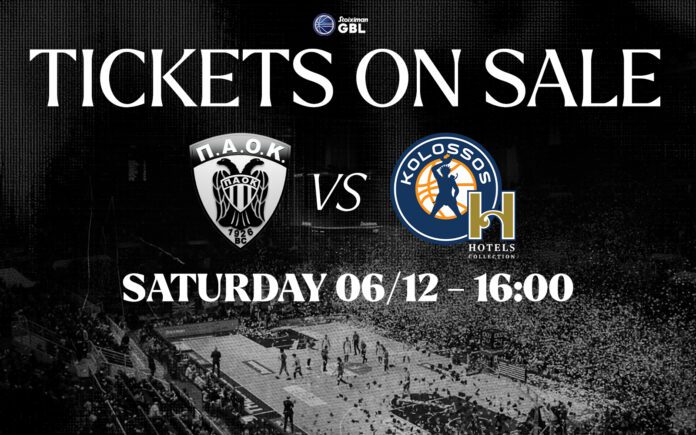 Η ΚΑΕ ΠΑΟΚ ανακοινώνει ό,τι ξεκίνησε η διάθεση των εισιτηρίων για τον αγώνα ΠΑΟΚ – Κολοσσός H Hotels Collection που θα διεξαχθεί στο PAOK Sports Arena τo Σάββατο (6/12) στις 16:00 για την 9η αγωνιστική της κανονικής περιόδου της Stoiximan GBL.
