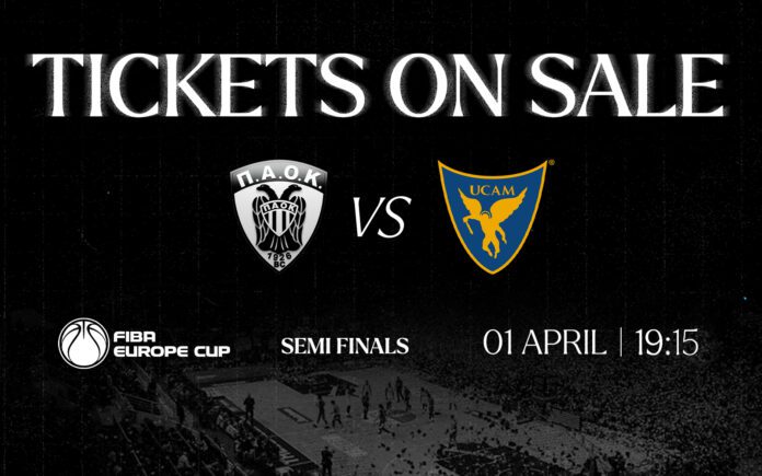 Η ΚΑΕ ΠΑΟΚ ανακοινώνει ό,τι ξεκίνησε η διάθεση των εισιτηρίων για τον αγώνα ΠΑΟΚ – Murcia, τον πρώτο ημιτελικό του FIBA Europe Cup, που θα διεξαχθεί στο PAOK Sports Arena την Τετάρτη 1η Απριλίου 2026 στις 19:15. Ο ΠΑΟΚ είναι για δεύτερη συνεχόμενη χρονιά στους “4” της διοργάνωσης και ΟΛΟΙ ΜΑΖΙ, θα κάνουμε το πρώτο βήμα για την συμμετοχή στους τελικούς.